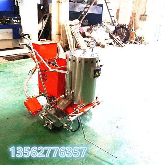 3mm的划线厚度(可调),热熔型涂料需加热至180℃左右才能施工,施工时,将固体粉末状涂料投入加热泵中,经过-石油气加热,熔化呈熔融流动状态后,然后将溶融涂料引入划线斗中,双保温不锈钢的材质使保温使物料保持熔融状态。人工划线是目前热熔型标线施工的-主要、-常用的一种施工方法。手推式划线车的线宽是由涂斗的宽度决定的,常用涂斗宽度是100mm,150mm,200mm,另外可以订做30mm,40mm,50mm 。开始划线时,应把划线斗放在路面上,由于划线斗与地面间有一定的间隙,当推动划线车时,靠自动流淌而刮抹出一条整齐的标线,它能自动均匀地在标线上撒布一层反光玻璃珠手推式热熔划线机的优点是使用设备少、寿命长,可使用3至5年,在夜间反光效果-,-污染能力强,能长期保持鲜明度,有良-的附着力、优良的-性、耐久性。