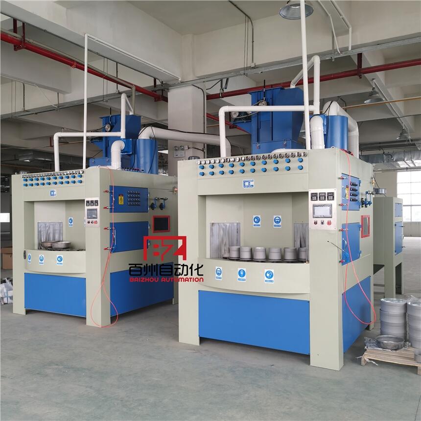 适用于圆盘类工件内外表面喷砂加工,清楚外表面污垢,划痕,及其它杂物,使表面达到哑光状态。