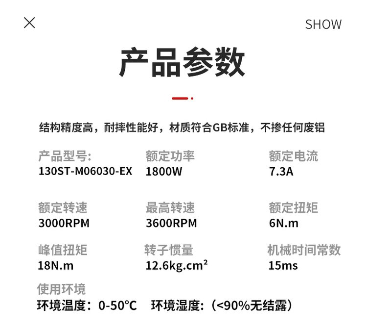 配件名称 | NSK轴承,多摩川编码器,F级绝缘漆 | ||