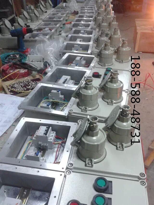 防爆插座箱是防爆配电箱的一种,防爆插座需要配合防爆插头一起使用,也叫做防爆检修箱,防爆检修箱主要由铝合金材质制成,表面高压静电喷塑,外形美观,不锈钢紧固件,内装密封条密封,使得防爆箱防护等级达到IP55以上,内装防爆按钮、指示灯、开关、急停按钮等以及防爆电流表、电压表、显示仪表等元件相辅相成,具有照明,动力,远程控制,显示等功能,厂家直销,可根据客户要求定制产品。防爆箱主要适用于石化装置、石油平台、加油站、油泵房、中转站等危险场所。