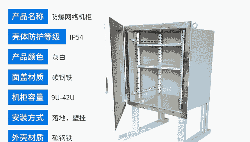 防爆网络机柜交换机防爆柜厂家定做6U12U42U防爆监控机柜防爆网络机柜外壳采用碳钢板/不锈钢板焊接成型,表面高压静电喷塑,配不锈钢外露紧固件,产品外形美观。防爆网络机柜控制箱设计精良,安全易用,我公司免费提供一年保修,箱体图纸可由贵公司提供,或由我公司代为制作.内可装交换机,平台服务器等。?