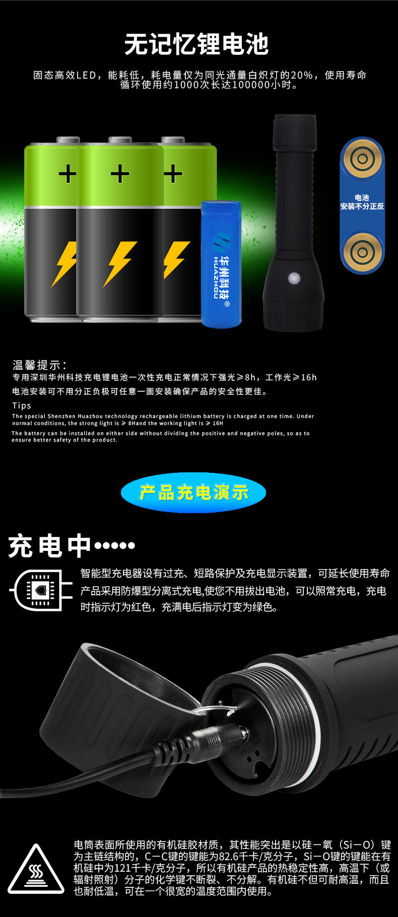 经济环保:高能无记忆电池,容量大、寿命长,可随时充电,循环使用,自放电率低,经济环保;