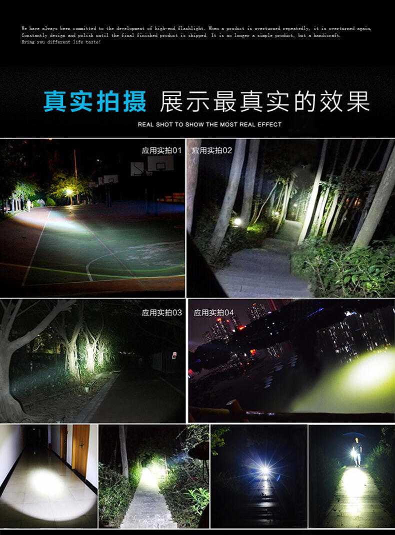 智能控制:设有强光、工作光、频闪三种工作模式,采用智能芯片控制开关,强弱光可任意转换;智能型充电器设有过充、短路保护及充电显示装置,可延长使用寿命;