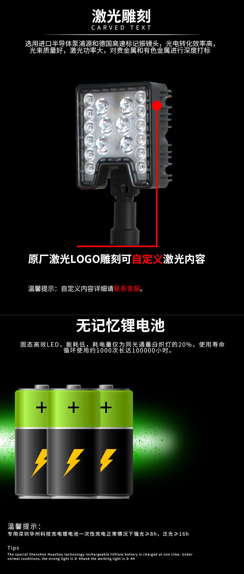 ◆应急功能:灯具设计有USB输出接口(5V 1A)可为手机等数码产品充电,解决用户在户外作业时手机或其他数码产品电量用尽无法使用的烦恼;
