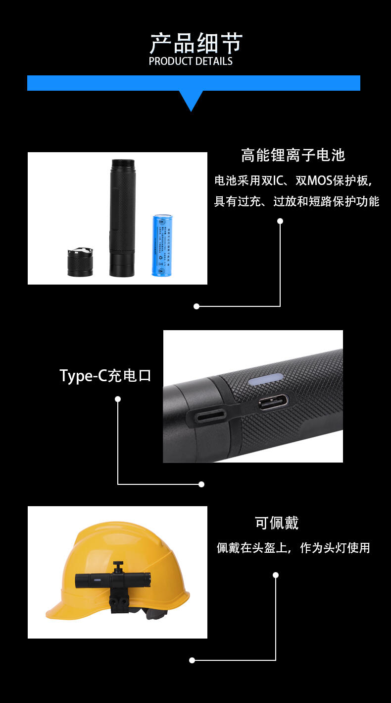 外形美观:体积小,重量轻,特别适合安装在头盔上,作为头灯使用;