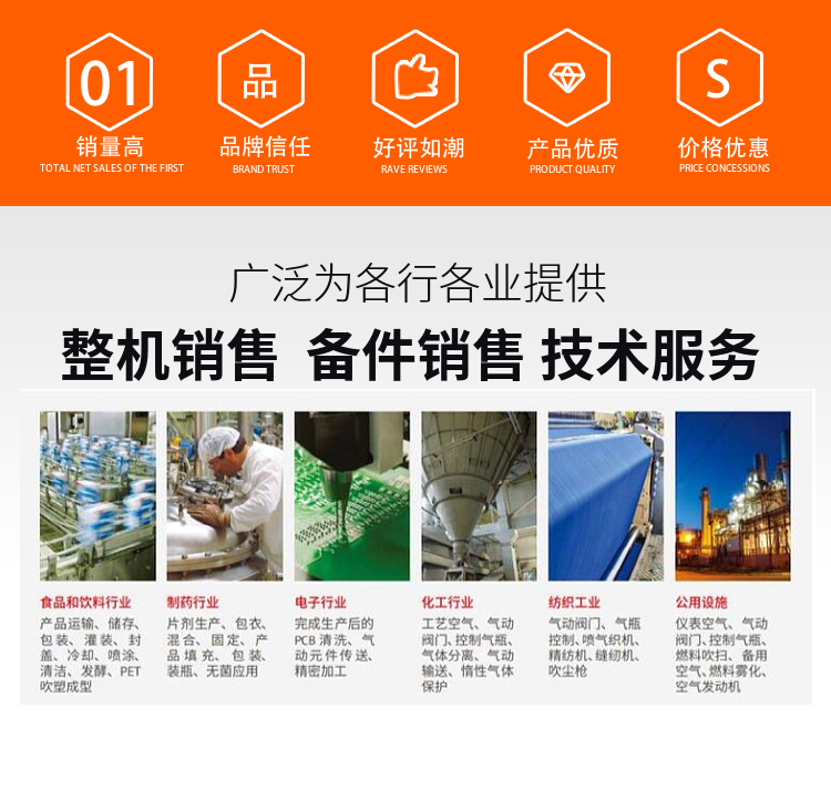 性能 | 低噪音、可变频、防爆等空压机 | ||