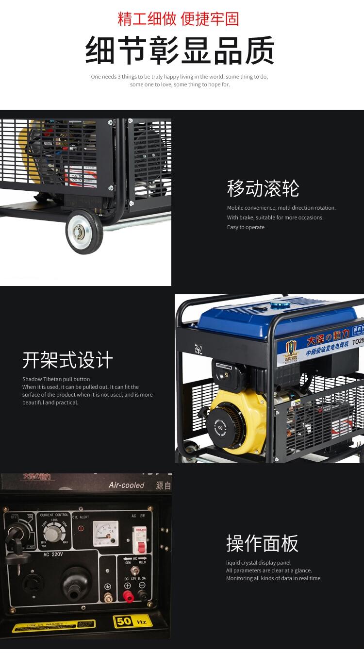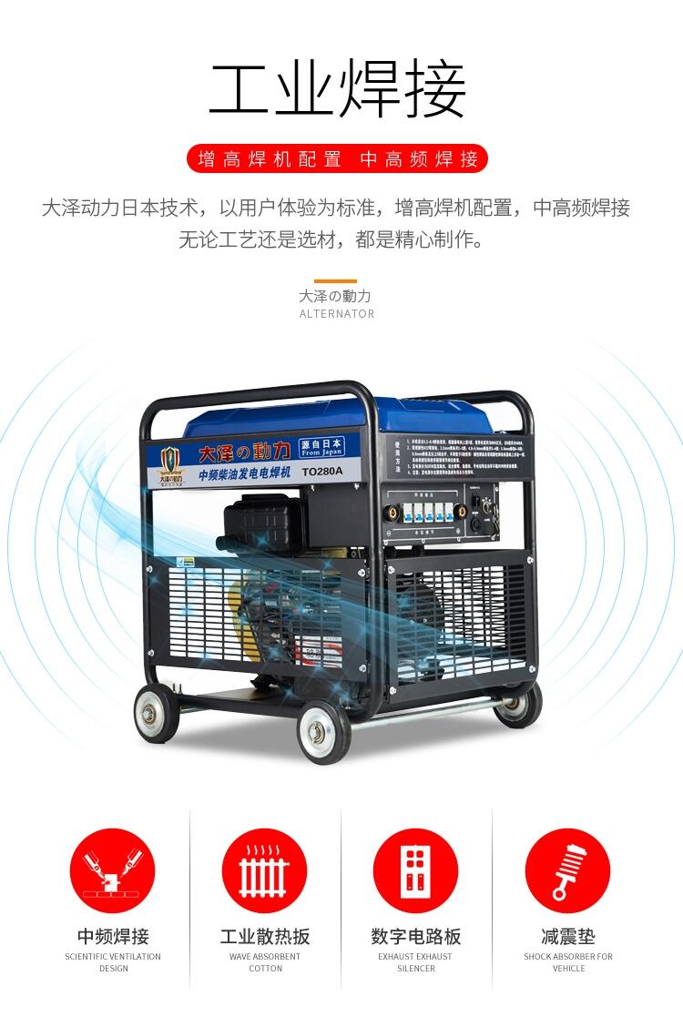 大泽230A柴油发电电焊机发电电焊机的优势:不需要接电源,方便户外工作。