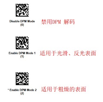 根据要扫描的条形码类型选择以下DPM模式之一。有两种DPM模式,建议用于不同的条形码特征组。这些特性的组合各不相同,建议在目标条形码上测试所有模式,以确定应用的模式。