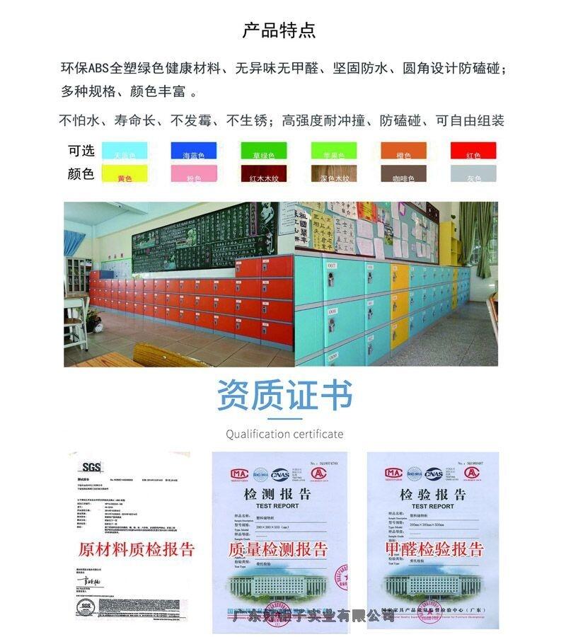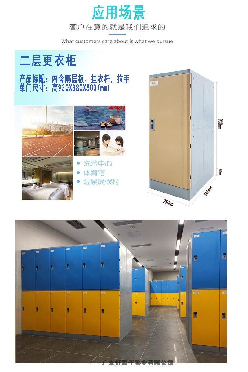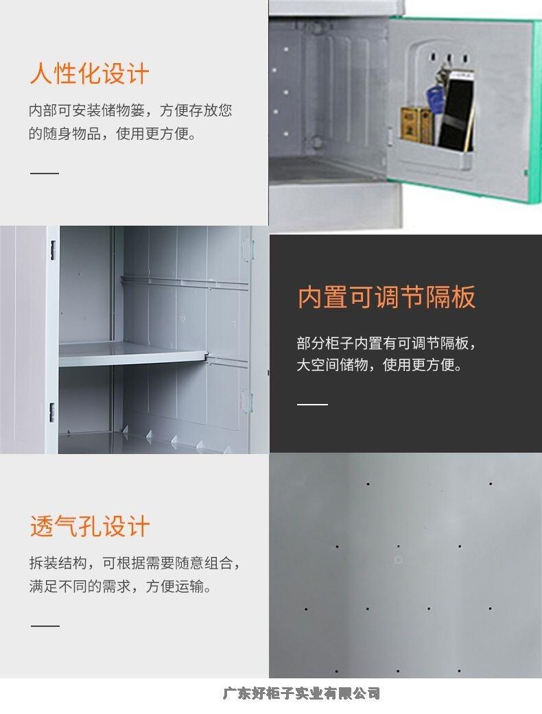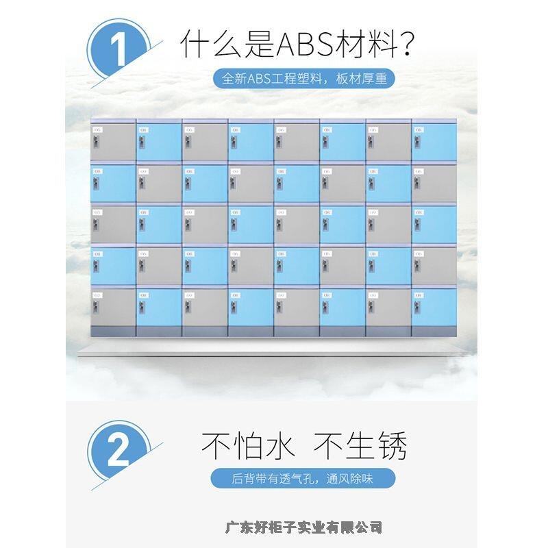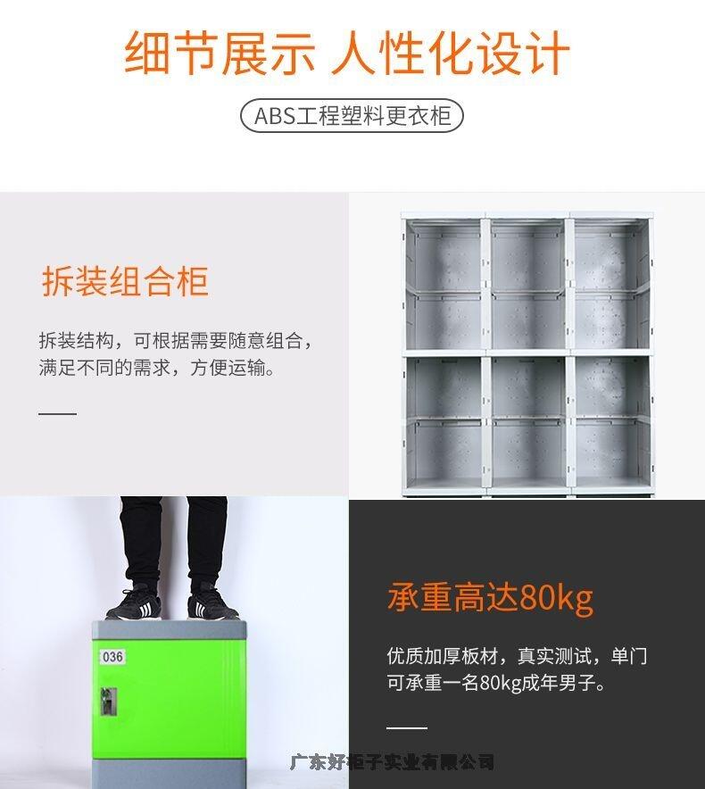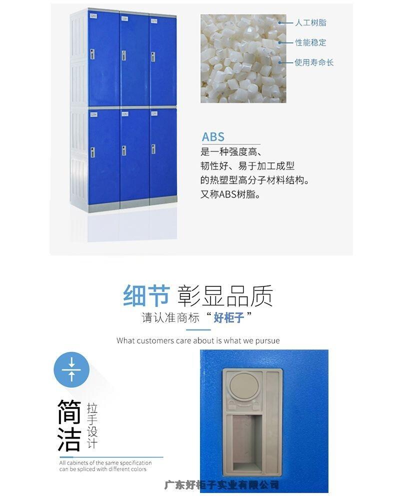 1材 质:更衣柜为ABS全新工程塑料制成,强度高、韧性好、耐冲击,不易腐蚀、,无毒无味,环保耐用。