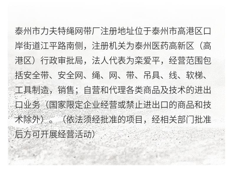泰州市力夫特绳网带厂 智能客服智能客服在线解答,若涉及资金打款事宜,务必与厂家进行电话确认。