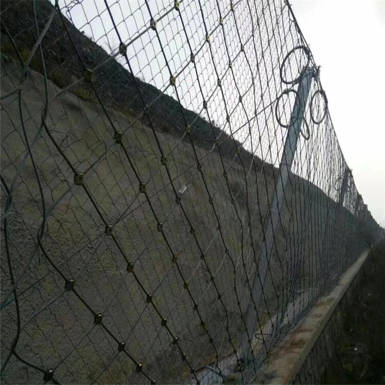 材质:钢丝绳网、支撑绳和减压环构造:由钢丝绳网或环形网(需拦截小块落石时附加一层铁丝格栅)、固定系统(锚杆、拦锚绳、基座和支撑绳)、减压环和钢柱四个主要部分构成。