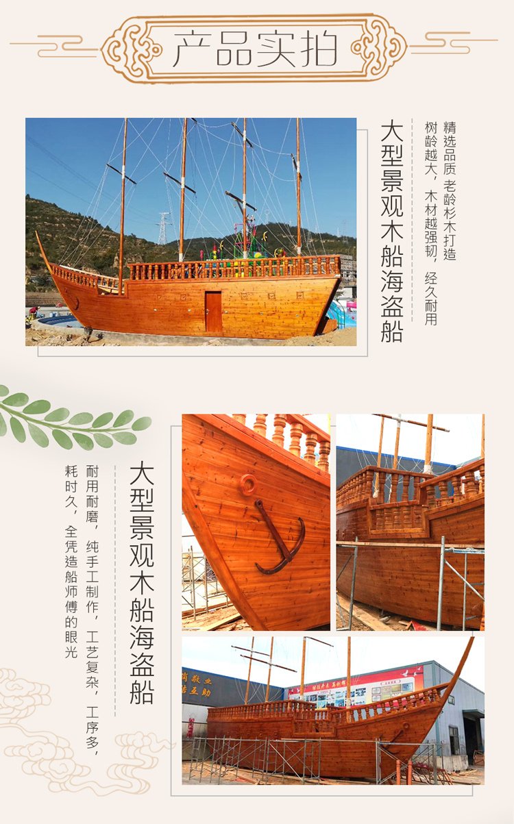 厂家直销大型景观木船海盗船18米仿古帆船木质景观装饰船价格优惠欢迎来样定制