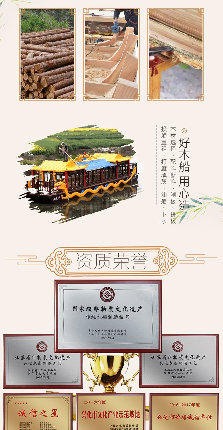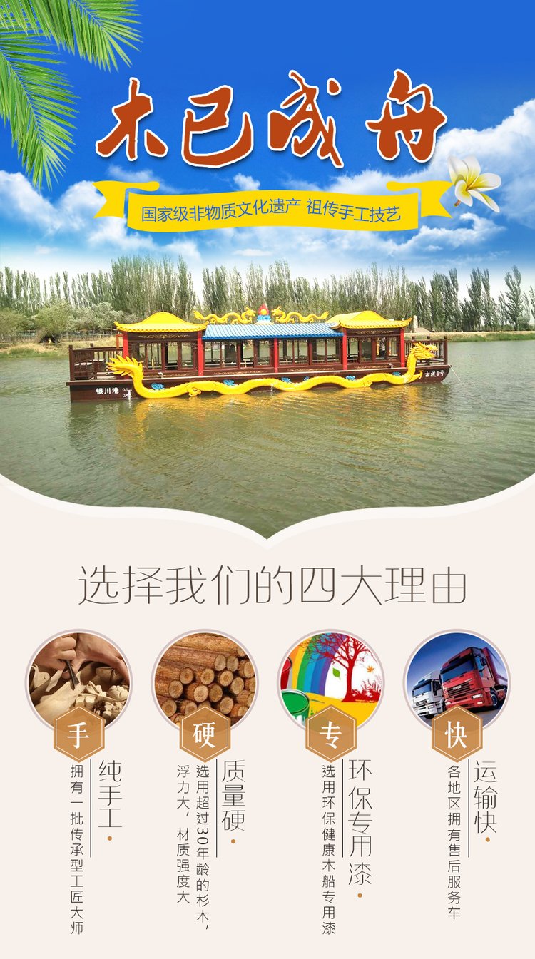 木已成舟牌14.1米豪华电动木质画舫船45人龙船游览船公园旅游观光游船定制厂家
