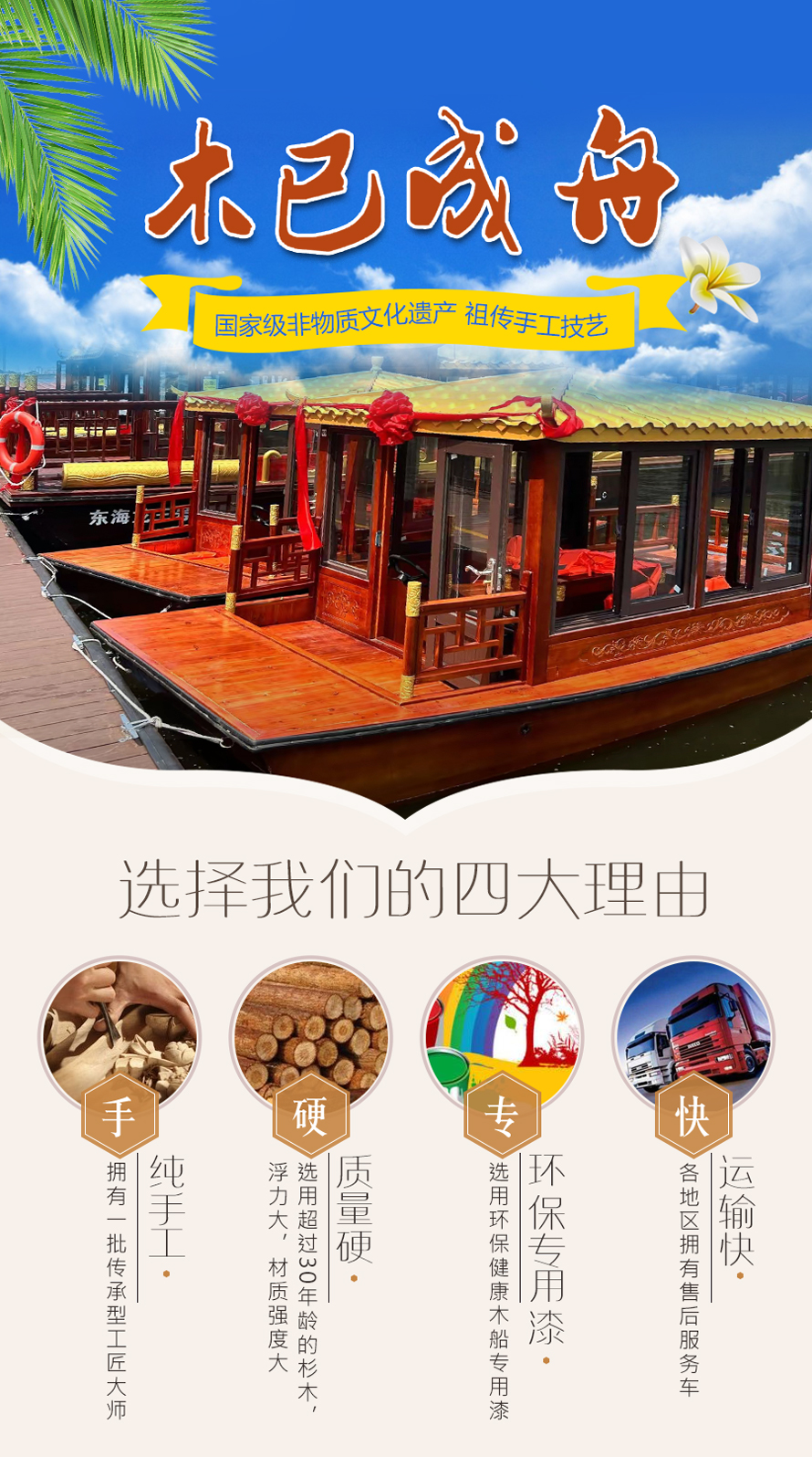 木船仿古5米电动小型画舫船景区观光旅游船接待客船