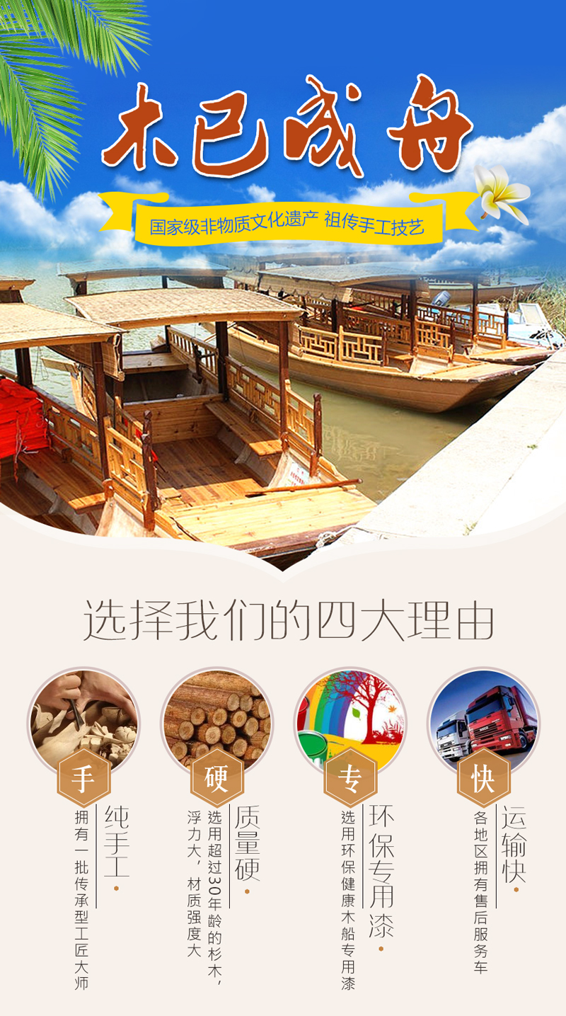 周氏木业景区观光游船木质观光船摇橹船电动游船生产厂家