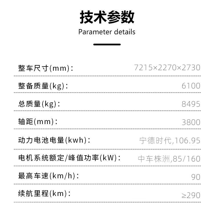 车型 | 楚风牌HQG5086ZYSEV2型纯电动压缩式垃圾车 | ||