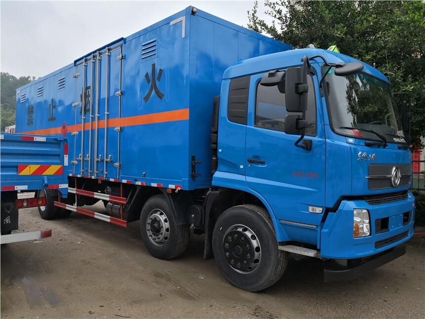 6×2驱动,D530平头一排半标准顶驾驶室,东风康明斯ISB210 50发动机(国Ⅴ,柴油-高压共轨+SCR后处理),轴距1800+4100mm,车架前宽860(mm),后宽860(mm),电阻加热冷起动装置,全铝400L主燃油箱,有燃油箱锁,电子油门踏板及开关,Φ430mm推式膜片弹簧离合器,陕齿8档8JS118TC-B变速箱,头档速比9.32,档为超速档,4.5吨双前桥,10吨单级减速后桥(东风435),主减速比4.44,无轴间差速锁,无轮间差速锁,车架纵梁断面尺寸280×80×[7+4]mm,钢板弹数10/10/10+8,295/80R22.5子午胎,美铝铝合金轮辋,手动调整臂,东风科技4通道ABS,全浮式前后悬机械减震驾驶室悬置,液压机械翻转,无色夹层前风窗玻璃,有空调,电动玻璃升降器,中控-遥控前车门锁,危化配置:盘式制动、限速80km/h、消声器前置。