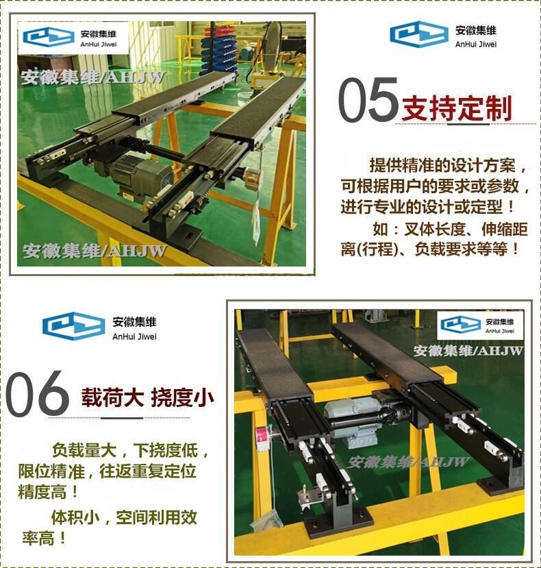 安徽集维智能装备有限公司是一家专业的堆垛机伸缩货叉制造商,拥有资历丰富的工程设计团队和技术师,全套的机加工设备,完全自主设计、自主生产,具备年生产1200台套伸缩货叉的制造能力,具有快速完成方案的设计能力,以及短期交付的生产加工能力,具备提前交付或快速交付的应急能力!