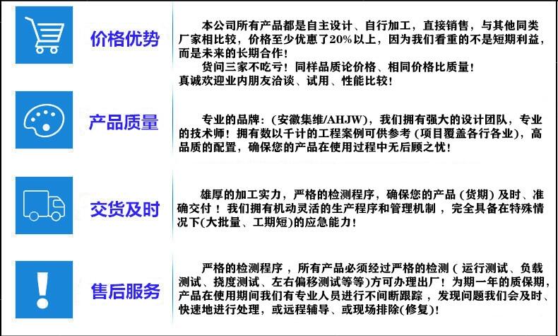 (9)动力配置(含减速电机)可搭载异步变频电机,或采用台达、三菱、西门子、汇川、步科、精研、松下等品牌伺服电机;