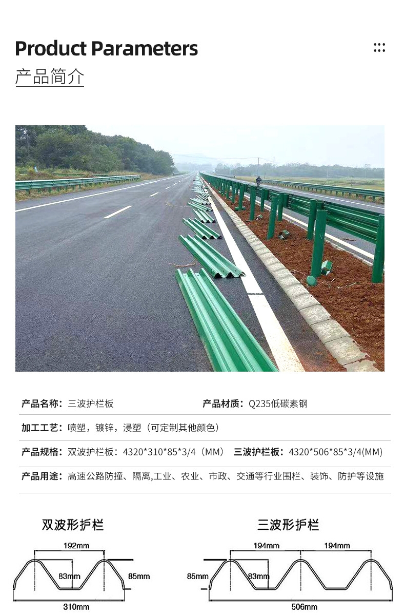 双波波形梁钢护栏镀锌喷塑护栏板厂