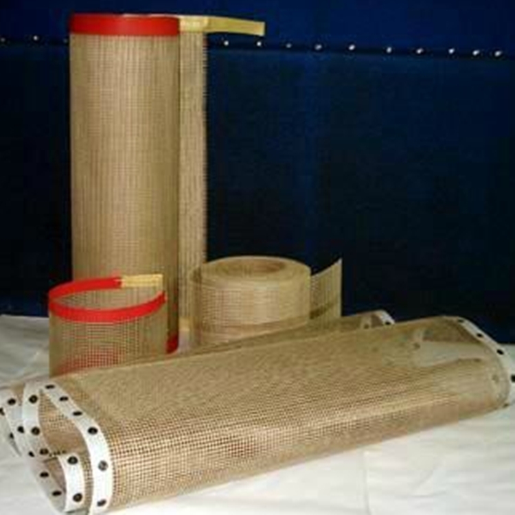 铁氟龙(PTFE)网格输送带,主要用玻璃纤维,凯夫拉纤维等纤维编织成网状输送带,后经过特氟龙乳胶浸渍成型,网带有白色,棕色,咖啡色,黄色,黑色等颜色。