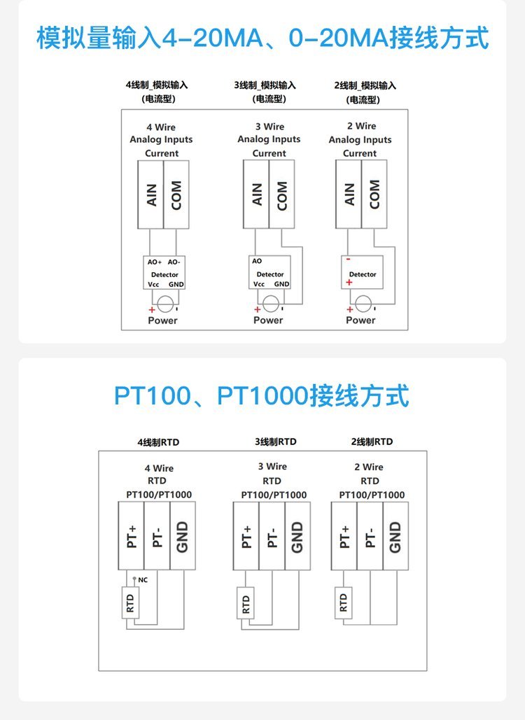 热电阻RTD输入 | 支持PT100、PT1000两种类型 | ||