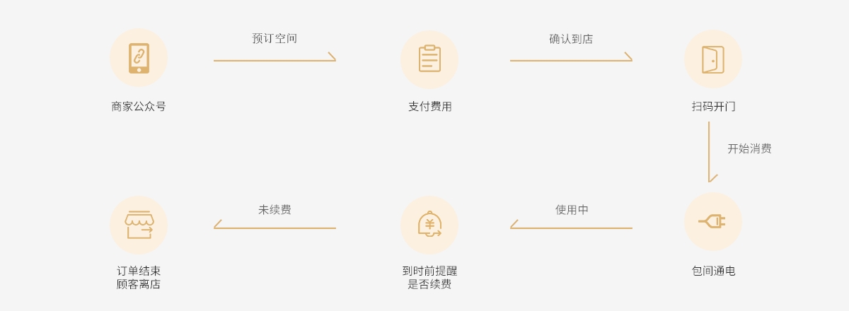消费者去这种无人自助棋牌室共享茶室只需要通过商家的公众号就可以在线预定包间,通过手机公众号,可以查看商家自助棋牌室或茶室的照片、包间使用状态、包间空余时间,然后在线预定,支付费用,到店后扫码就可以开门使用。房间打开,灯光、如果是棋牌室的话,机麻桌自动开启,整个过程不用人员接待,无人推销、无人打扰。