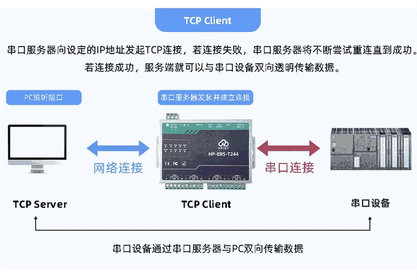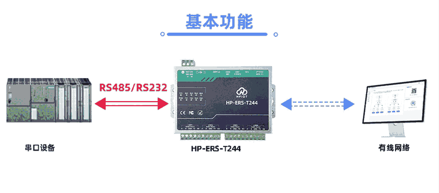 HP-ERS-T244四串口服务器用于实现串口到以太网口的数据的双向透明传输。用户无需关心具体细节,服务器内部完成协议转换。串口一侧实现串口数据的透明传输,以太网口一侧则是TCP/IP数据包,通过简单设置即可**工作细节,四个串口相互独立。可以通过服务器内部的网页进行,也可以通过设置软件进行设置,一次设置永久保存。采用Cortex-M7方案,主频高达400MHz,性能更强,传输速度更快,可靠性更高。搭载深度优化的TCP/IP协议栈。双重看门狗和多种保活机制助力设备稳定运行。支持TCP Client、TCP Server、UDP Client、UDP Server、Httpd Client五种工作模式,简单配置即可实现数据透传功能。