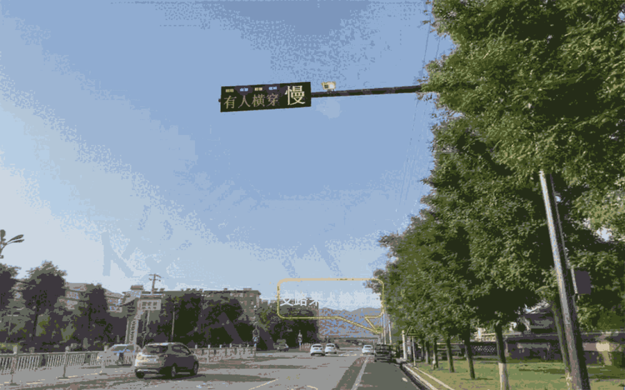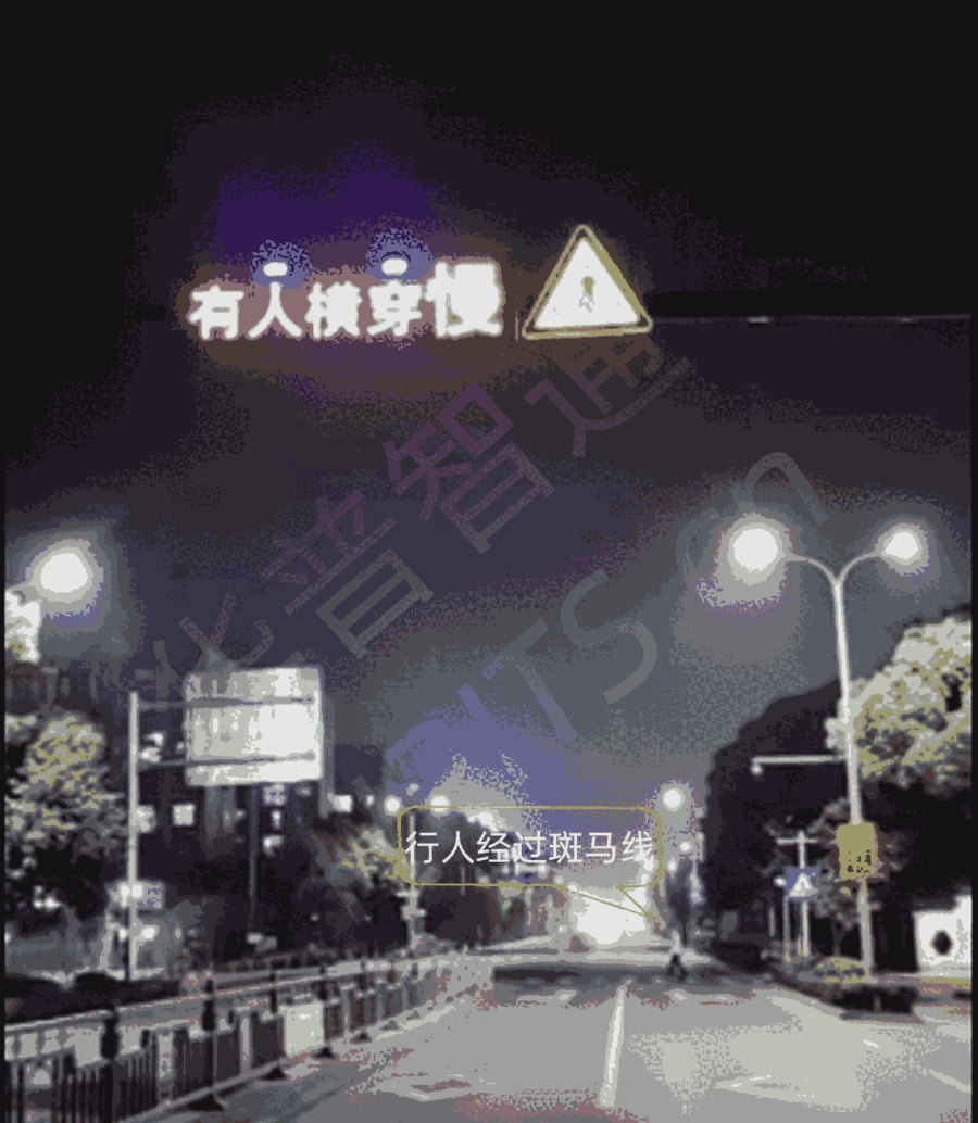 行人过街安全预警系统,路口来人检测系统,行人过斑马线安全预警系统。车辆检测:24GHz车辆检测雷达,检测距离120~150米。可区分来去向,车流量统计。速度范围:5~300km/h; LORA无线通讯模块:通讯距离1~3Km LED屏显示规格1280mm*320mm,红绿双色。 动态测速区LED屏规格640mm*480mm,红绿双色。 动态“慢”字,实时速度显示、天气预报等信息可订制。 有人横穿提醒:红蓝爆闪灯警示。 可增语音联动提醒: 0~125db号角,声音大小和时间可设定。 其它功能:4G无线路由,设备管理平台,地图位置显示,设备状态监测、远程维护及升级等。