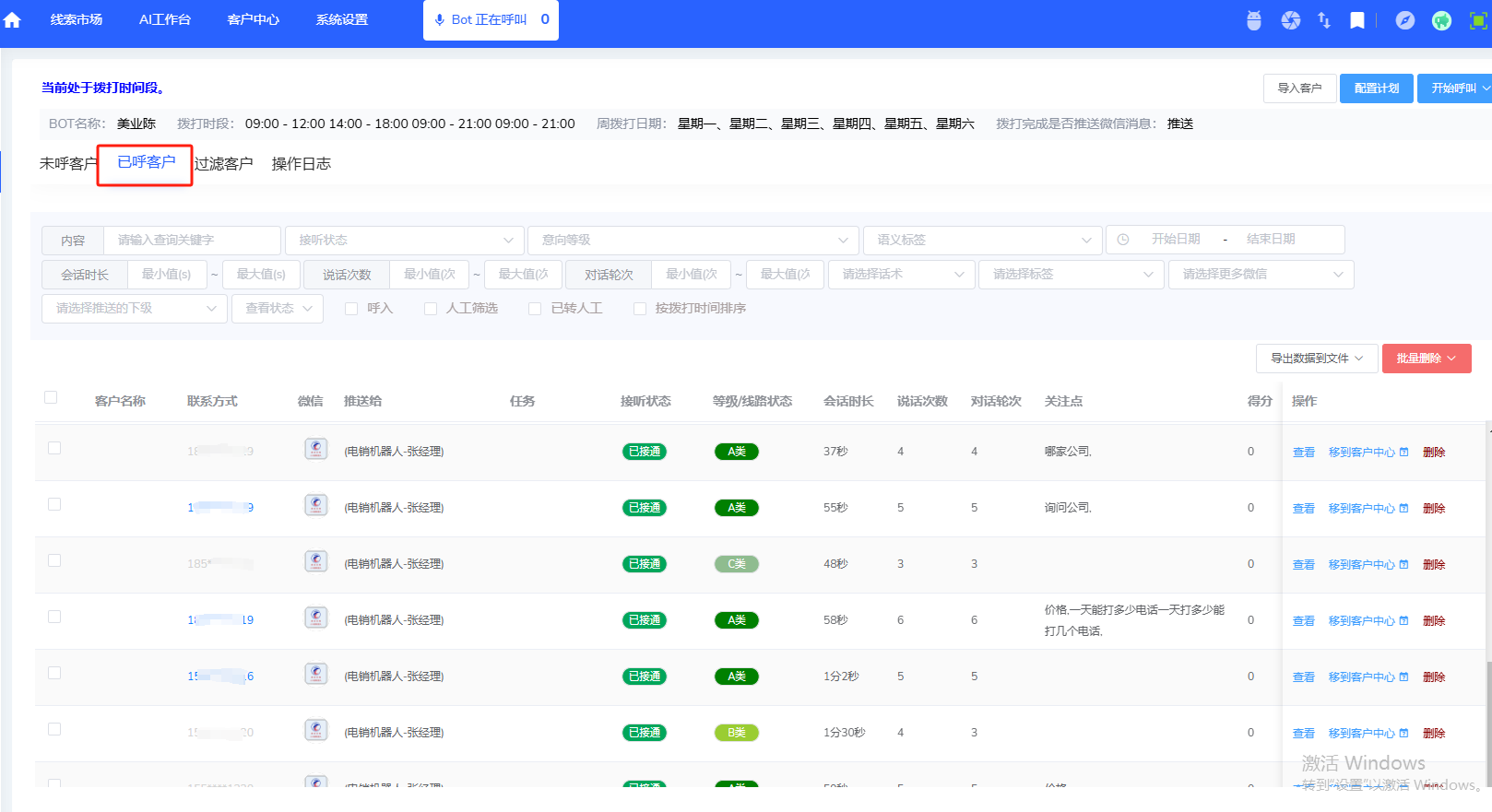 自动分类:机器学习,神经网络算法自动识别客户意向并准确分级,可直接根据客户意愿强弱区分跟进优先级,以便快速达成交易通话记录,识别文本自动存取,客户业务关注点自动标出,通话录音长时间保存,可听取完整录音和分段录音