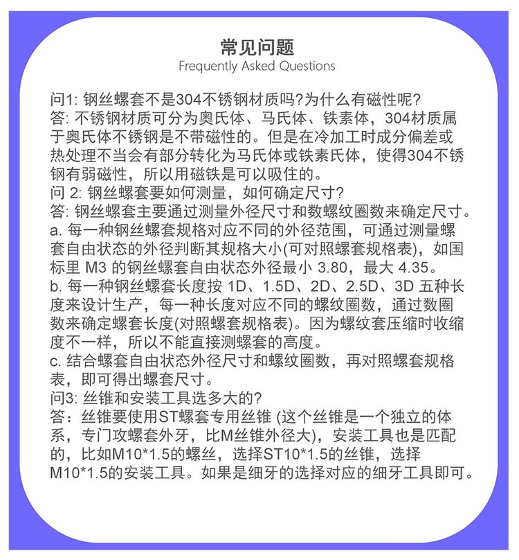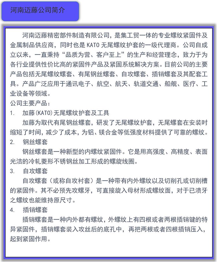 适用范围 | M2-M12顺牙无尾螺套安装 | ||