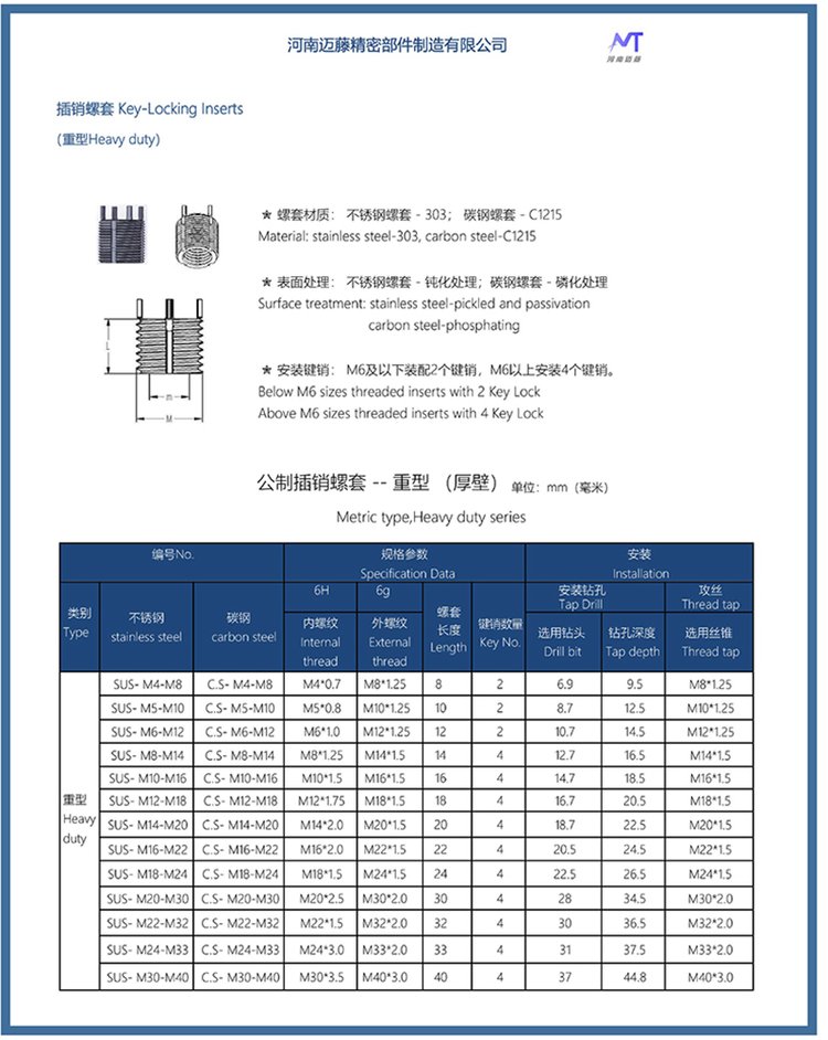 订货号 | M2-M6微型螺套M5-M16薄壁型M4-M24重型 | ||