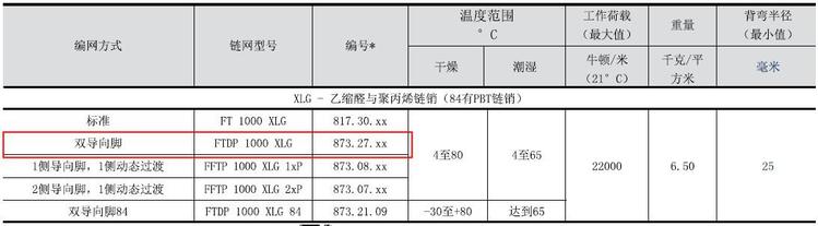 1000系列1英寸节距链网具有全面性链节和突出的设计特征,使之成为一款多功能链网;适用于饮料、包装和食品工业。一次注塑成型的定宽链网型号配有导向脚引导系统,用于单条生产线和包装机械。1000系列装有挡板,用于食品工业。标准链网的材料为低摩擦性乙缩醛与聚丙烯,用于饮料行业,还提供性材质的标准链网,适用于直接接触食品和高危性加工区域。