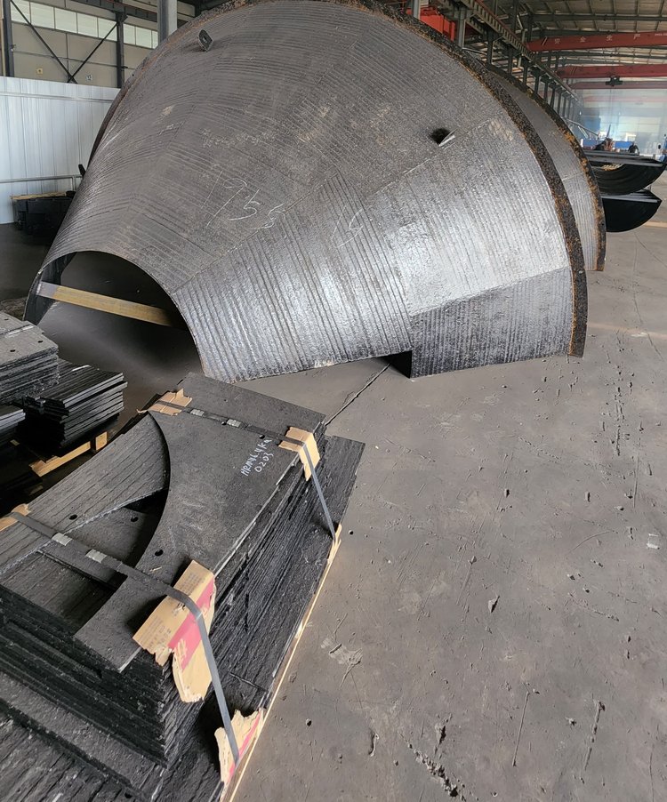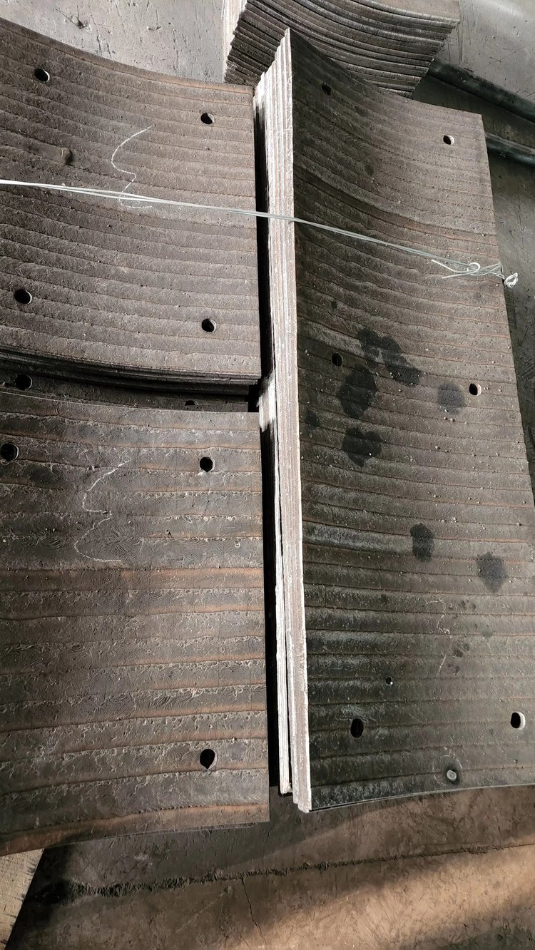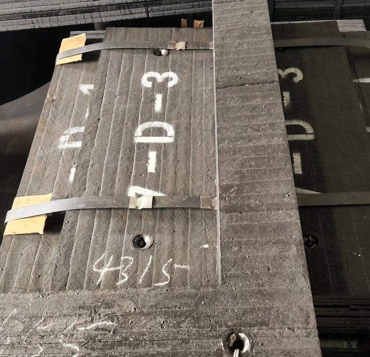 高耐磨复合钢板。它是采用自动金属电弧堆焊方法,在Q235(也可根据客户需要选择基材)整幅钢板上形成过共晶高鉻合金耐磨层。在耐磨复合板中,金属化合物以比较弥漫的形式分布于固溶体基材上,并被实际用作强化相,从而使整个合金的强度、硬度、耐磨性得到很大的提高。