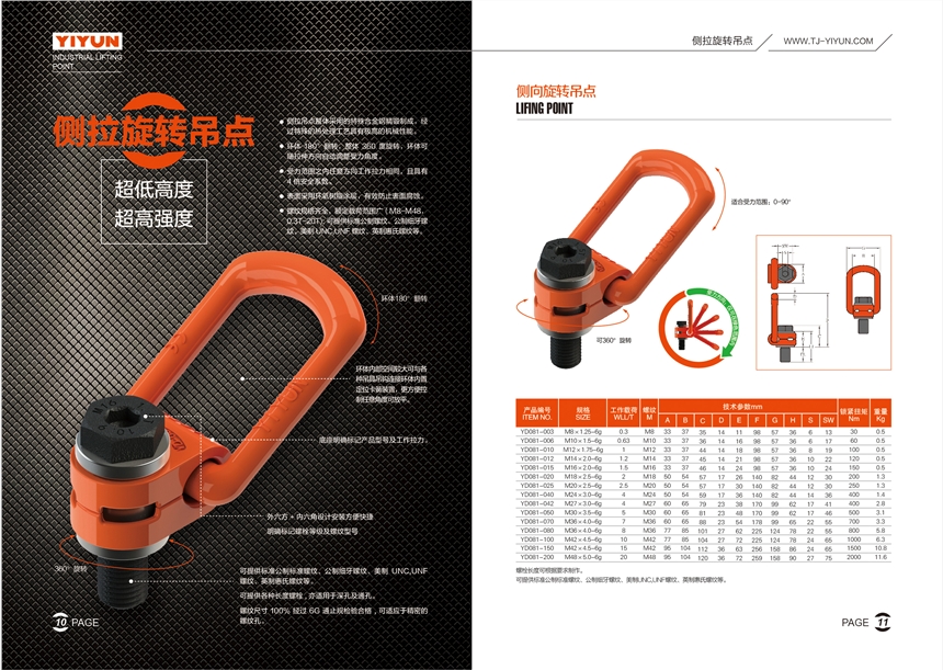 *起重吊环均可360°全周旋转,且具有180°支点绕轴旋转功能