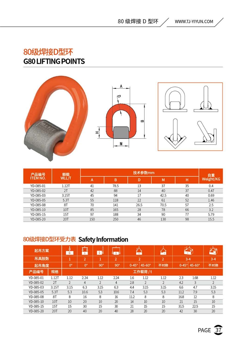 *起重吊环所采用的高强度高韧性特殊合金钢锻造而成均经过调质热处理