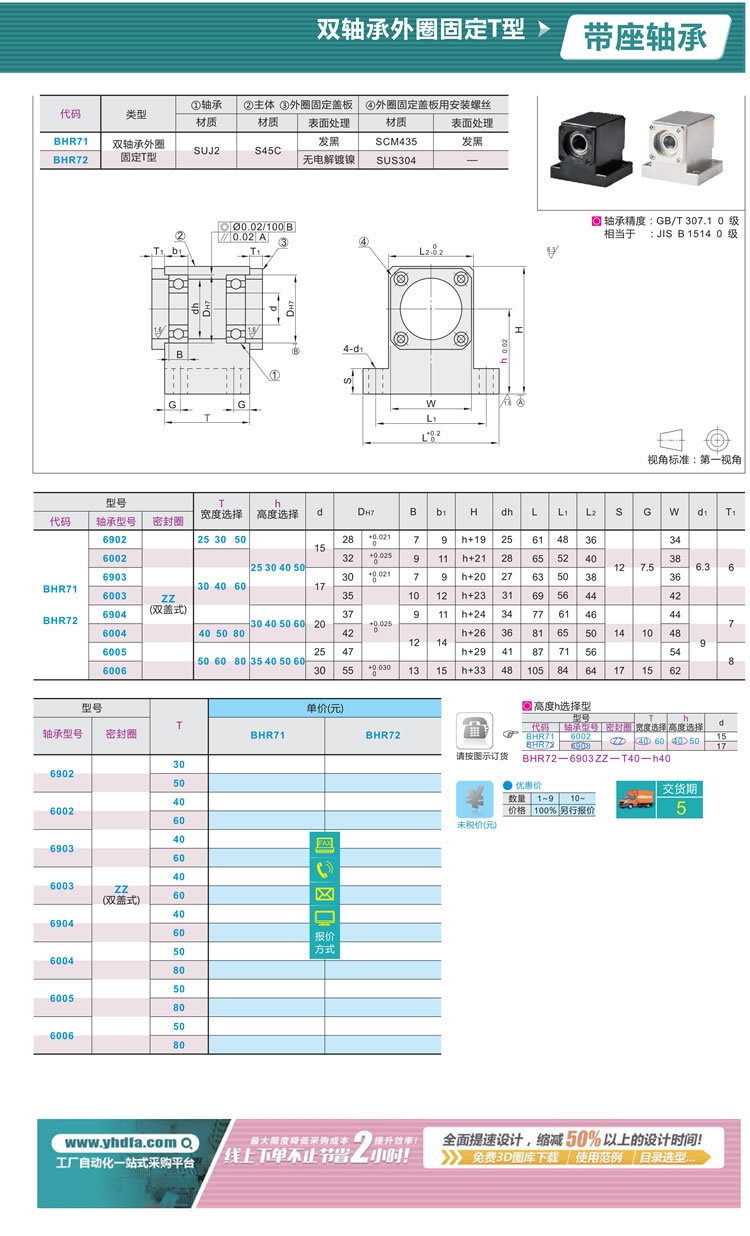 BHR71-6005ZZ-T60-h60,带座轴承,怡合达带座轴承