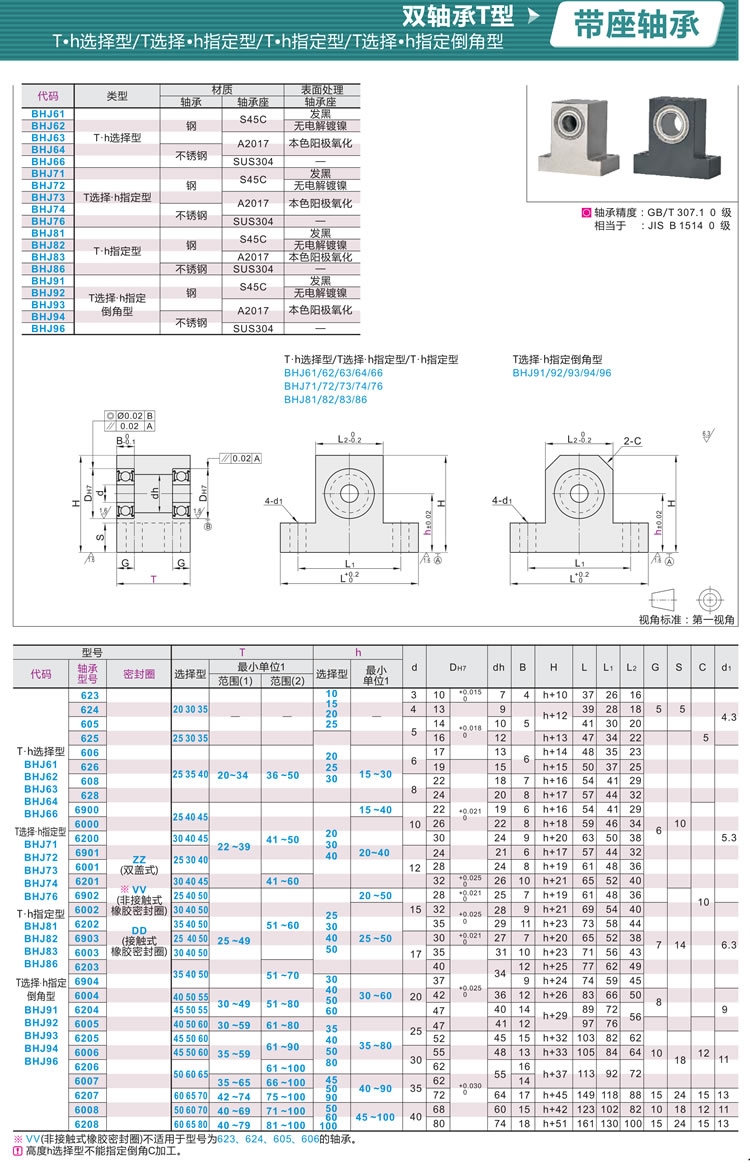 带座轴承 双轴承T型 T h选择型/T选择 h指定型/T h选择型/T选择 h指定倒角型