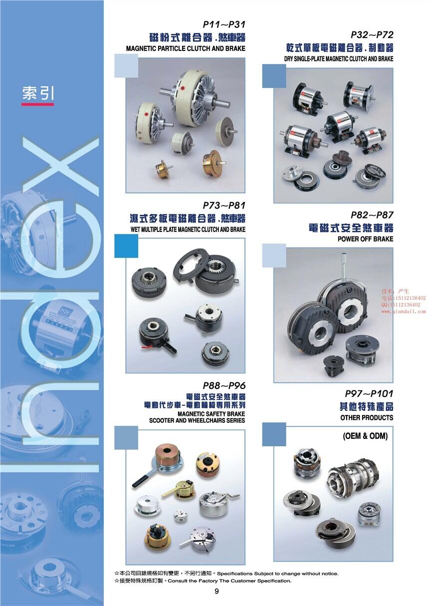 电磁离合器、刹车器—微小型此系列的离合器和刹车器,可以于任何固定的位置来安装,且不太需要任何保养。如果必要的话,可依据实际的工作情形,检查及调修工作间隙的距离。此种机型的离合器和刹车器可广泛用在事物机械和自动化工业上,如:折纸机、提款机、影印机、电动门...等