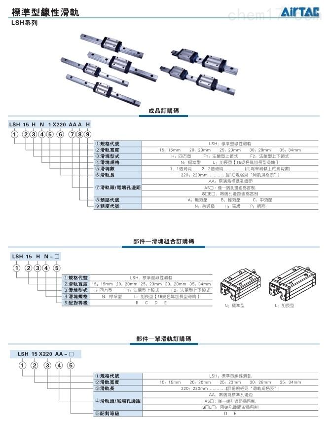 亚德客LSH系列标准型线性滑轨产品参数: | |||||||