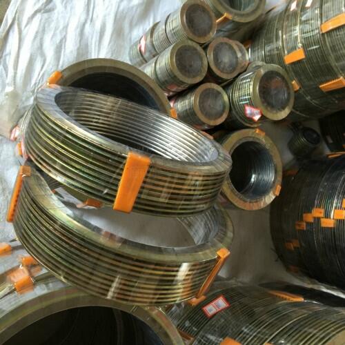 缠绕垫(基本型)是采用标准优质的SUS304、SUS316("V"形或"W"形) 金属带及其它合金材料与石墨、石棉、聚四氟乙烯、无石棉等柔性材料相互重叠螺旋缠绕,并在开始及末端用点焊方式将金属带固定而成。加工大尺寸: 5000 mm;特殊规格或各类非标准产品可按您的要求制作生产。应用;石油、化工、电力、冶金、船舶、造纸、医药等法兰连接处的管、阀、泵、人孔、压力容器及换热设备的密封部位是理想的静密封材料。适应温度:-196℃--+870℃ (柔性石墨),≤ +250℃ (聚四氟乙烯),≤ +500℃ (特殊石棉)介质;适用于高温高压蒸气、油、油气、溶剂、热煤体油等。使用压力:≤300Mpa。最小预紧比压:y=68 MPa