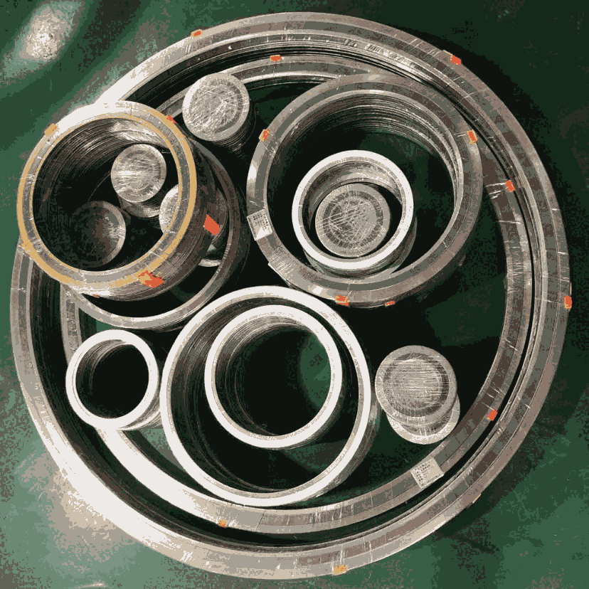 带外环金属缠绕垫片由基本型金属缠绕垫片加上由钢板做成的外环而构成,外环用来加强压力、防止缠绕松动。外环可选不同材质。金属缠绕垫片分四种形式:基本型金属缠绕垫片、带内环金属缠绕垫片、带外环金属缠绕垫片、带内外环金属缠绕垫片。应用范围:石油、化工、冶金、电力、船舶、机械等行业的管道、阀门、压力容器、冷凝器、换热器、塔、人孔、手孔等法兰连接处密封。 我们能按照ANSI,API.DIN.JIS,JPI,BS等标准生产,或者由用户具体注明要求。使用压力≤25Mpa。 如垫片用在换热器上,一般我们推荐带Φ3.2的不锈钢内环,窄带材质同钢带,窄带形式分粘贴型或包覆型。 金属缠绕垫片采用 SUS304、SUS316(“V”形或“W”形) 金属带及其它合金材料与石墨、石棉、聚四氟乙烯、无石棉等软性材料相互交替重迭螺旋缠绕而成,在开始及末端用点焊方式将金属带固定。 金属缠绕垫片为半金属密合垫中回弹性佳的垫片,金属缠绕垫片结构密度可依据不同的锁紧力要求来制作,并利用内外钢环来控制其大压紧度,金属缠绕垫片接触的法兰密封面的表面精度要求不高。 金属缠绕垫片特别适用于负荷不均匀、接合力易松弛,温度与压力周期性变化、有冲击或震动的场合。缠绕垫片是阀门、泵、换热器、塔、人孔、手孔等法兰连接处理想的静密封原件。