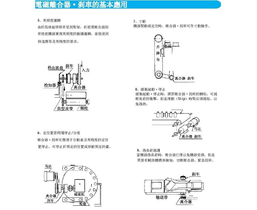 台湾仟岱产品在设备材料方面使用了导磁率的材质,来令片使用摩擦系数高,底摩耗的非石绵来令片,提高产品的应答时间及产品的使用寿命。在性能方面主要突出:高速应答、耐久性大、组装维护容易、不需要进行磨耗调整、动作确实,可以进行扭力调整。