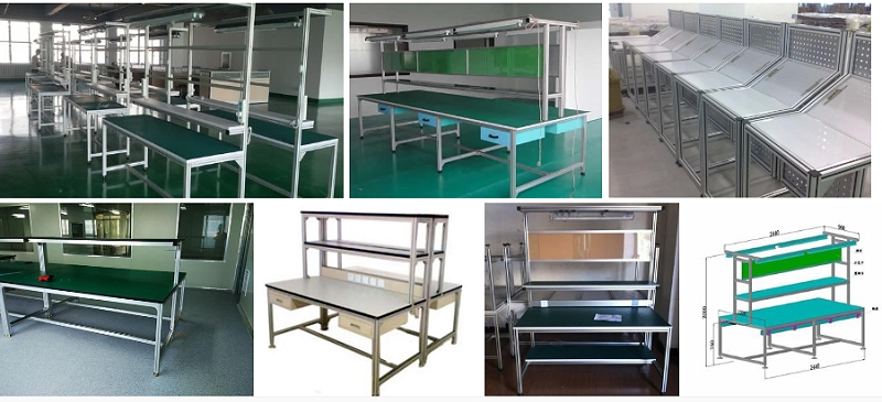 流水线工业铝型材及配件可以加工组装成产品:工具料架(车)、产品专用工具车、防静电工作台、产品展示架、液晶面板、阳光房、展示柜、展示架、机械防尘护罩、产品检测设备、非标设备、工业围栏、屏风、绘图仪、检测设备、生物实验设备、机架、贴标机、生产流水线、电机转子生产线、电子产品生产线、流水线工作台、设备防护屏障、液晶屏生产设备外罩、仪器设备台、物料架、洁净棚、超市信息栏架、汽车模型、隔断等及个性化框架加工。