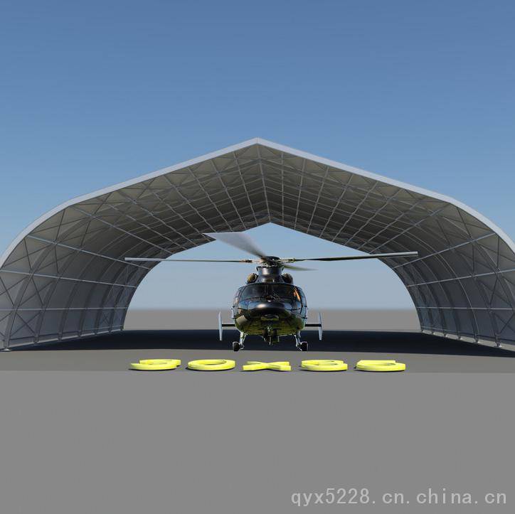 机库篷房的尺寸可以依据不同的飞机尺寸来量身定做,主要特点是支架按高强度级别设计,配置气膜隔热篷布,大跨度柔性提升门和隔热夹心钢板墙。咨询热线:13906125228