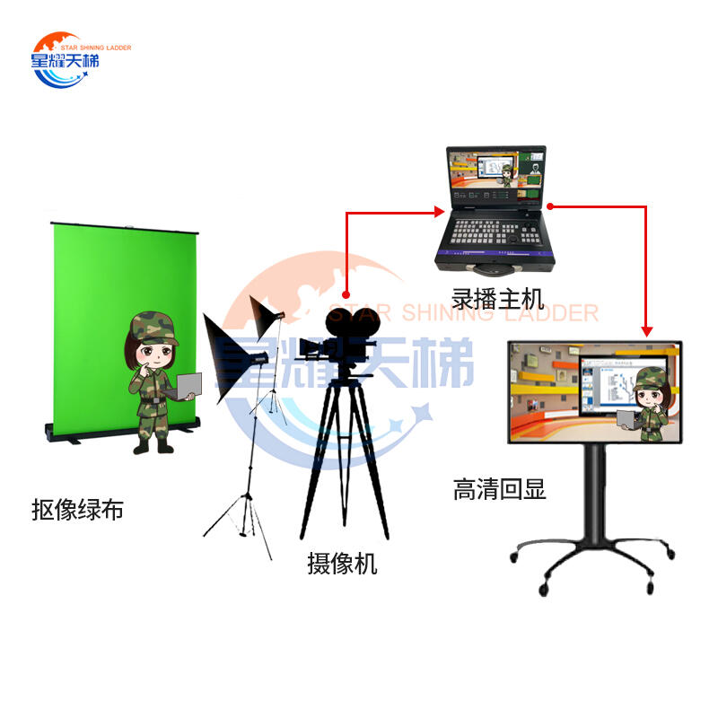 为了帮助部队及军校更有效地利用现代化视频设备推动军事职业教育,星耀天梯推出了面向军事职业教育的便携式在线课程制作条件系统解决方案,该系统为国产品牌,自主可控,通过虚拟抠像的技术,从而打造出炫彩夺目的各类军事职业教育在线课程、扩大教育宣传的覆盖面、增加军事职业教育的影响力。新环境下军事职业教育对传统视频课程提出严峻考验,便携式课程制作条件的建设是军事职业教育的其中一部分内容,以满足互联/军综网在线学习为主,主要以摄像机+便携式采编一体机+抠像幕布为核心产品组成