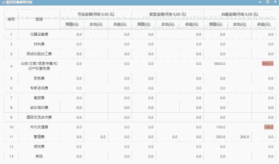 可随时查看项目当前的经费使用情况,对比项目各类别预算和支出金额。