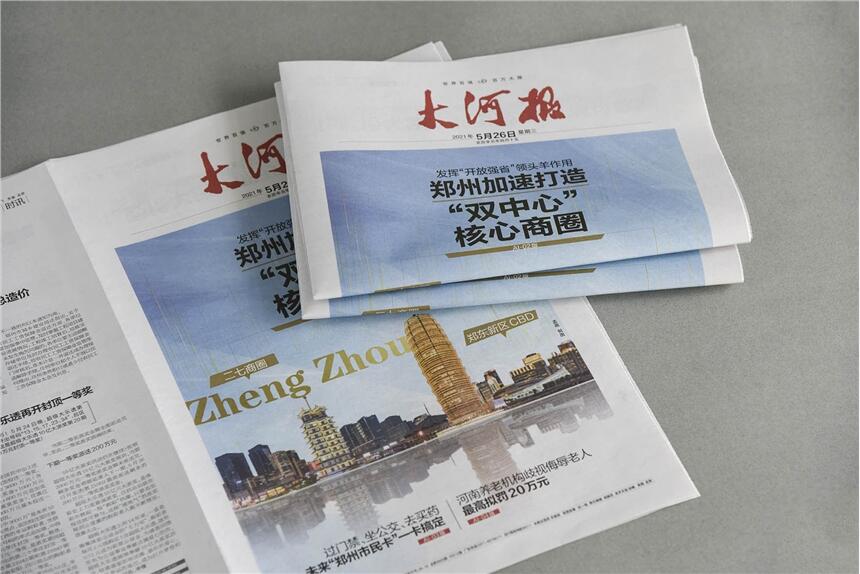 河南日报报业集团印务中心和河南日报报业集团大河印刷有限公司,位于郑州国家经济技术开发区第三大街,占地 134亩,厂房面积4.5万m2,资产规模4.2亿,是目前中西部地区集印前制作、报纸印刷、商业印刷、印后加工和发行服务为一体的综合性印刷企业,能够广泛承印不同规格的报纸期刊、教材教辅、图书画册及DM广告等印刷产品。 在报业集团党委的领导下,印务中心和大河印刷有限公司坚持贯彻 "诚信为本、服务立身"的企业发展方针,全心构建"诚信、质量、服务"一体化的企业文化,不断追求和实现着"用科技复制精彩"的经营理念,为您印制出精美的印刷产品,提供更全面的印刷服务。