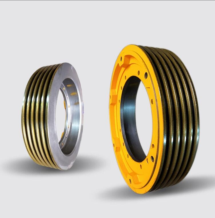 曳引轮是曳引机上的绳轮,也称曳引绳轮或驱绳轮,它是电梯传递曳引动力的装置,利用曳引钢丝绳与曳引轮缘上绳槽的摩擦力传递动力,装在曳引机的蜗轮轴上。