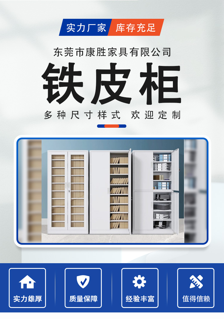 康胜办公室用铁皮柜子上玻璃下铁门柜KS中二抽屉铁皮文件柜